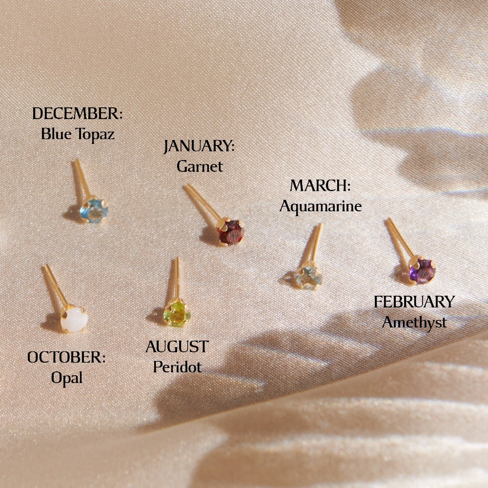 Dainty 3mm (real) gemstones encased in an elegant 14k prong setting. Delightfully giftable or an exciting extra dash of color for your own ear party, we just love the element of personalization these tiny stunners bring.